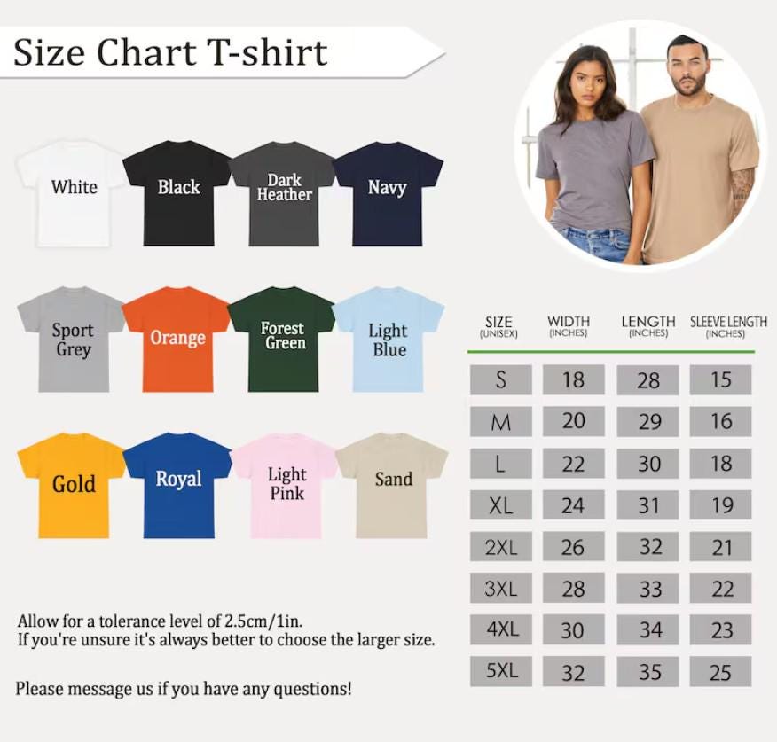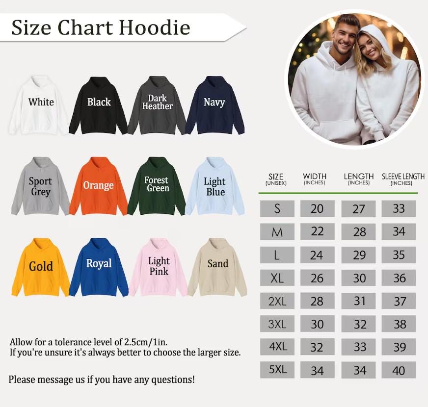 Comfortable t-shirts, hoodies, and sweatshirts available. Wash with like colors in cold water, air dry recommended. Returns accepted within 14 days of delivery, unworn only.