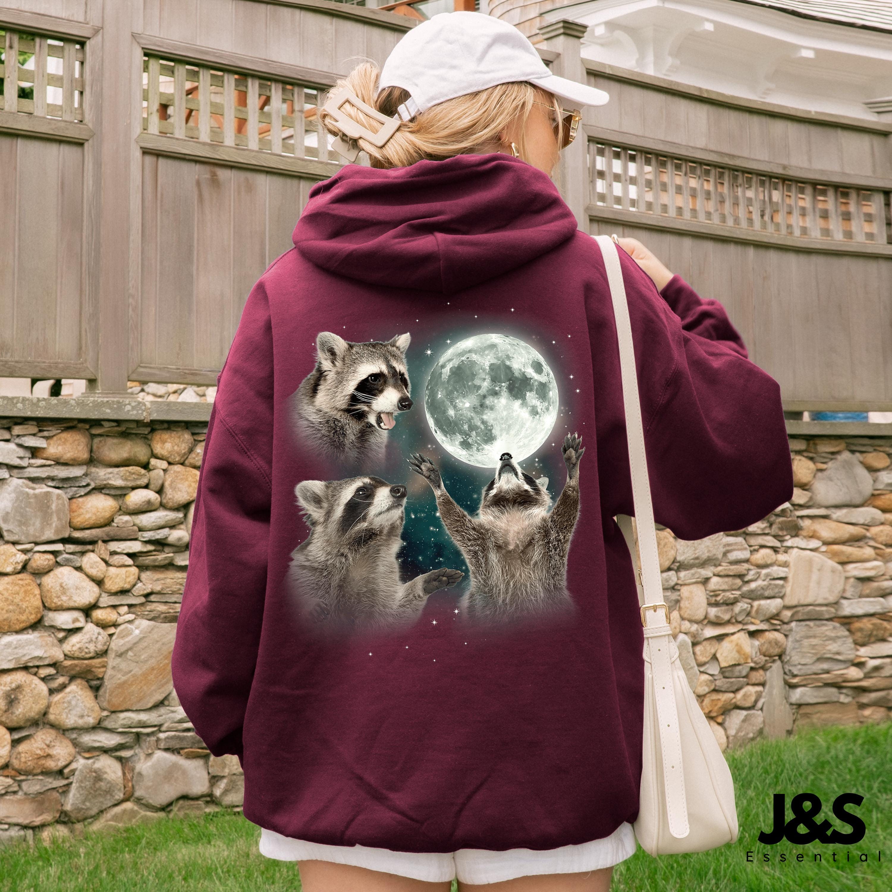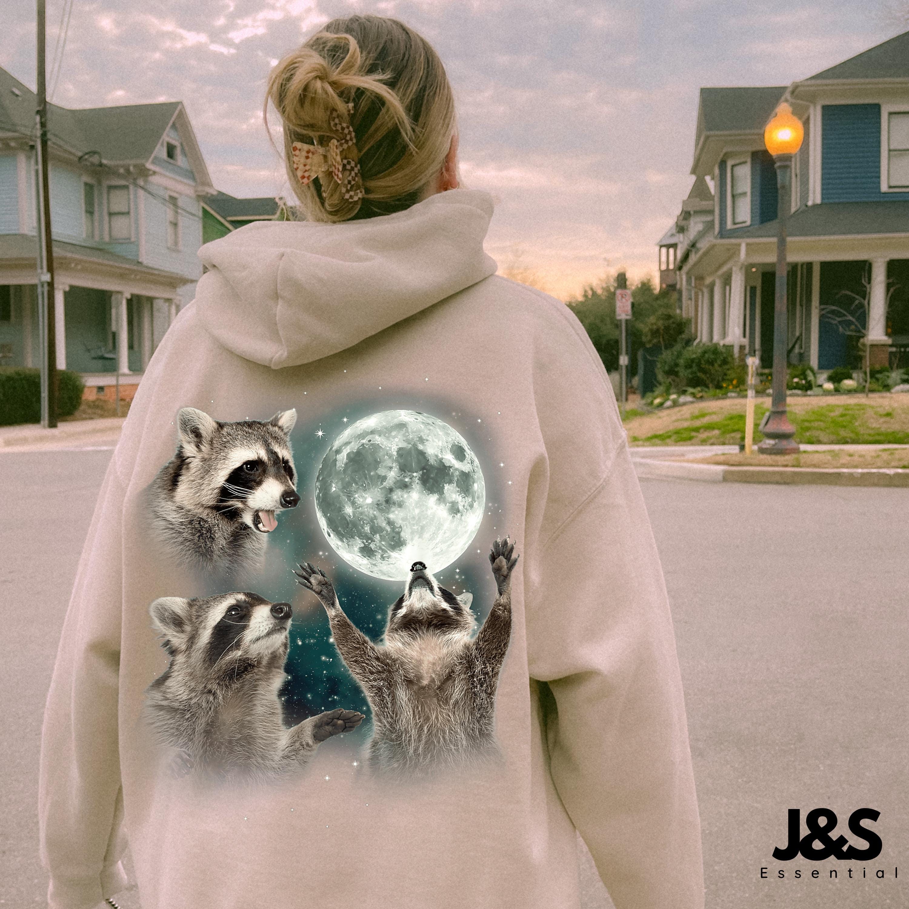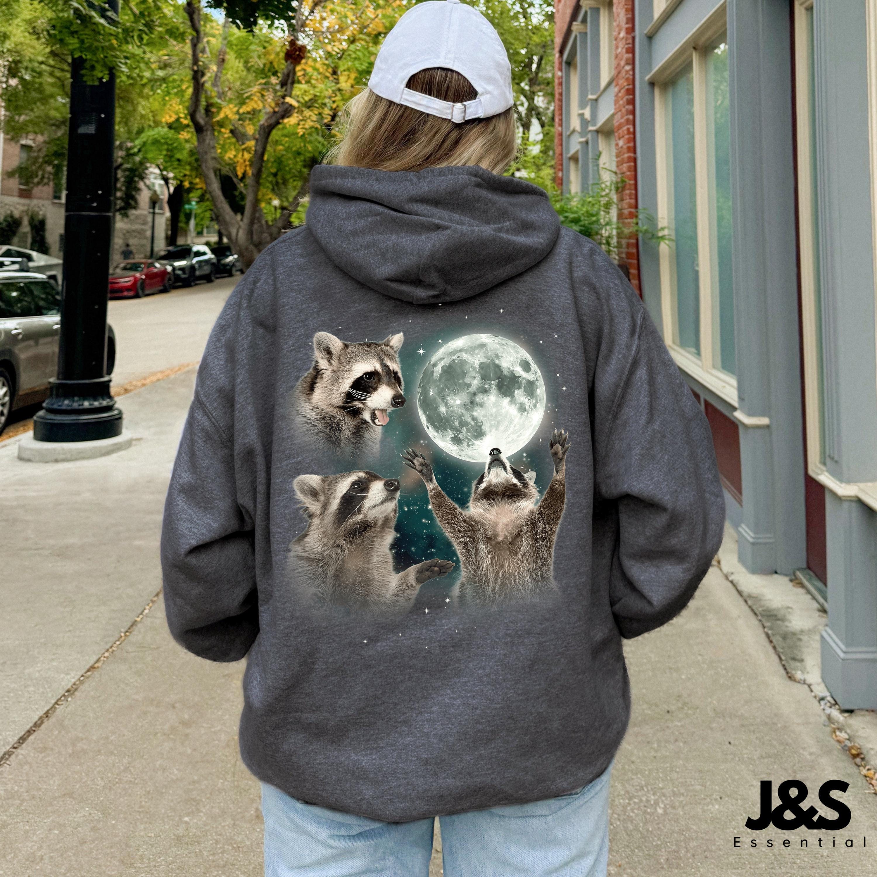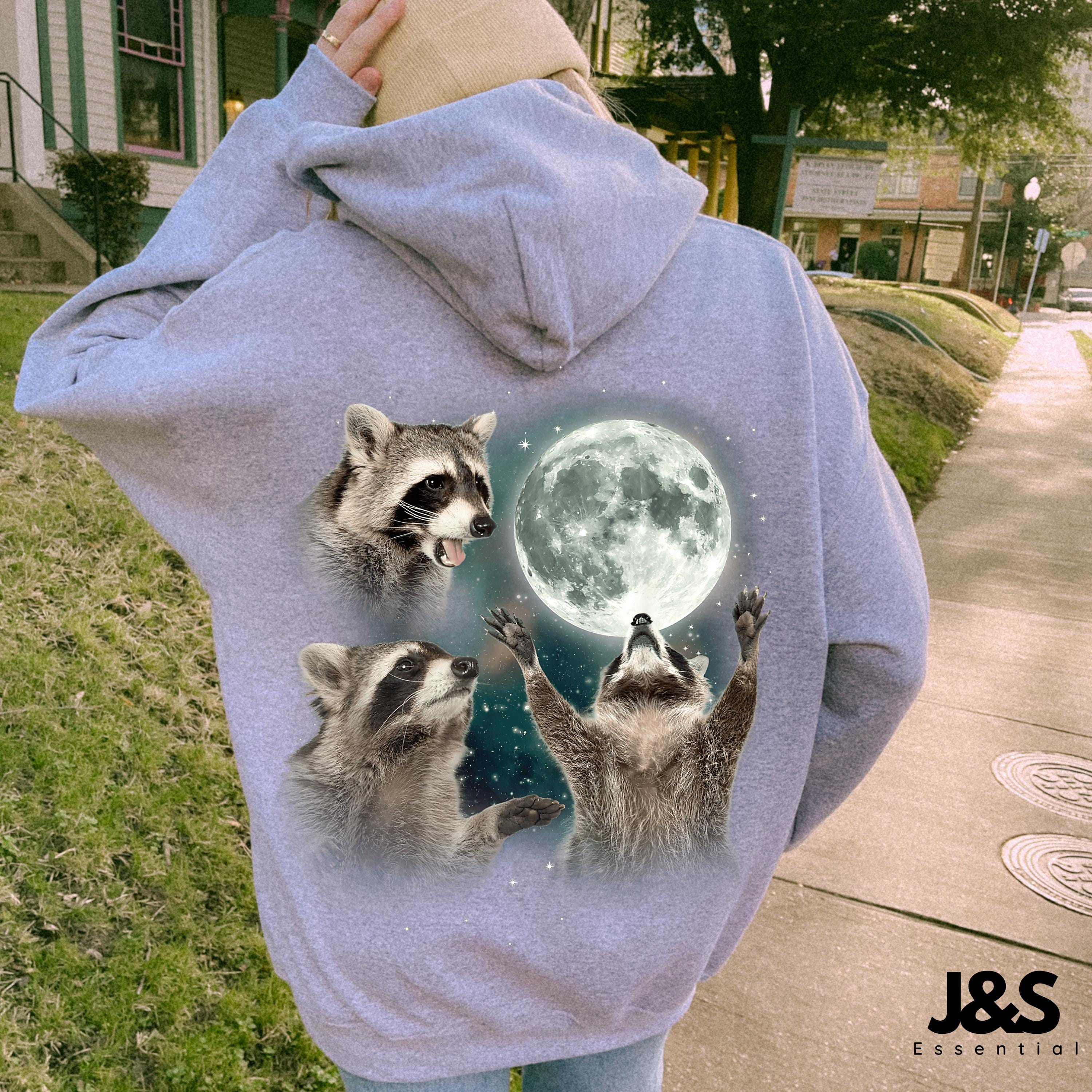 Three Raccoon Moon Hoodie, Funny Animal Lover Gift, Cozy Unisex Pullover, Cool Raccoon Sweatshirt, Celestial Moon Phase Hoodie