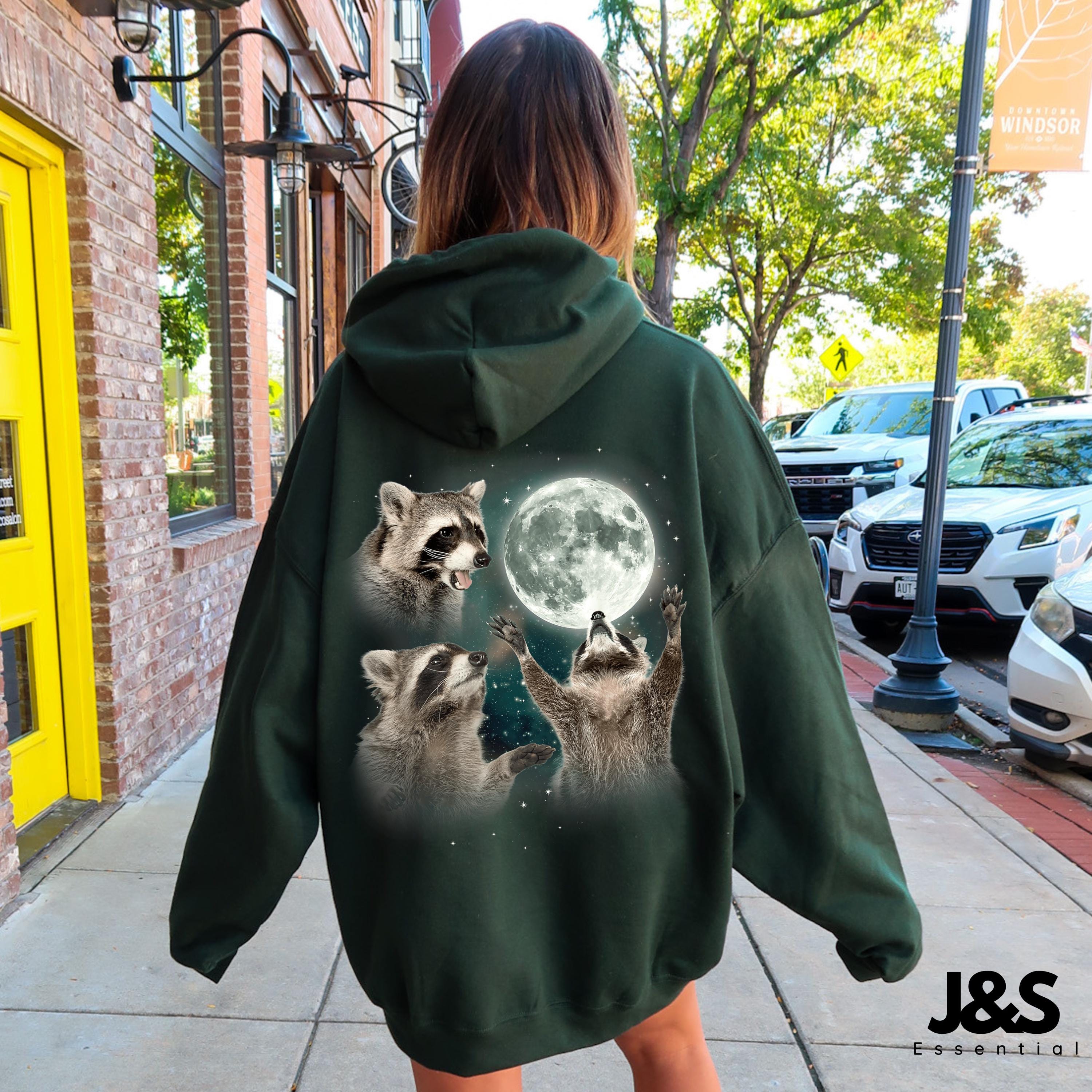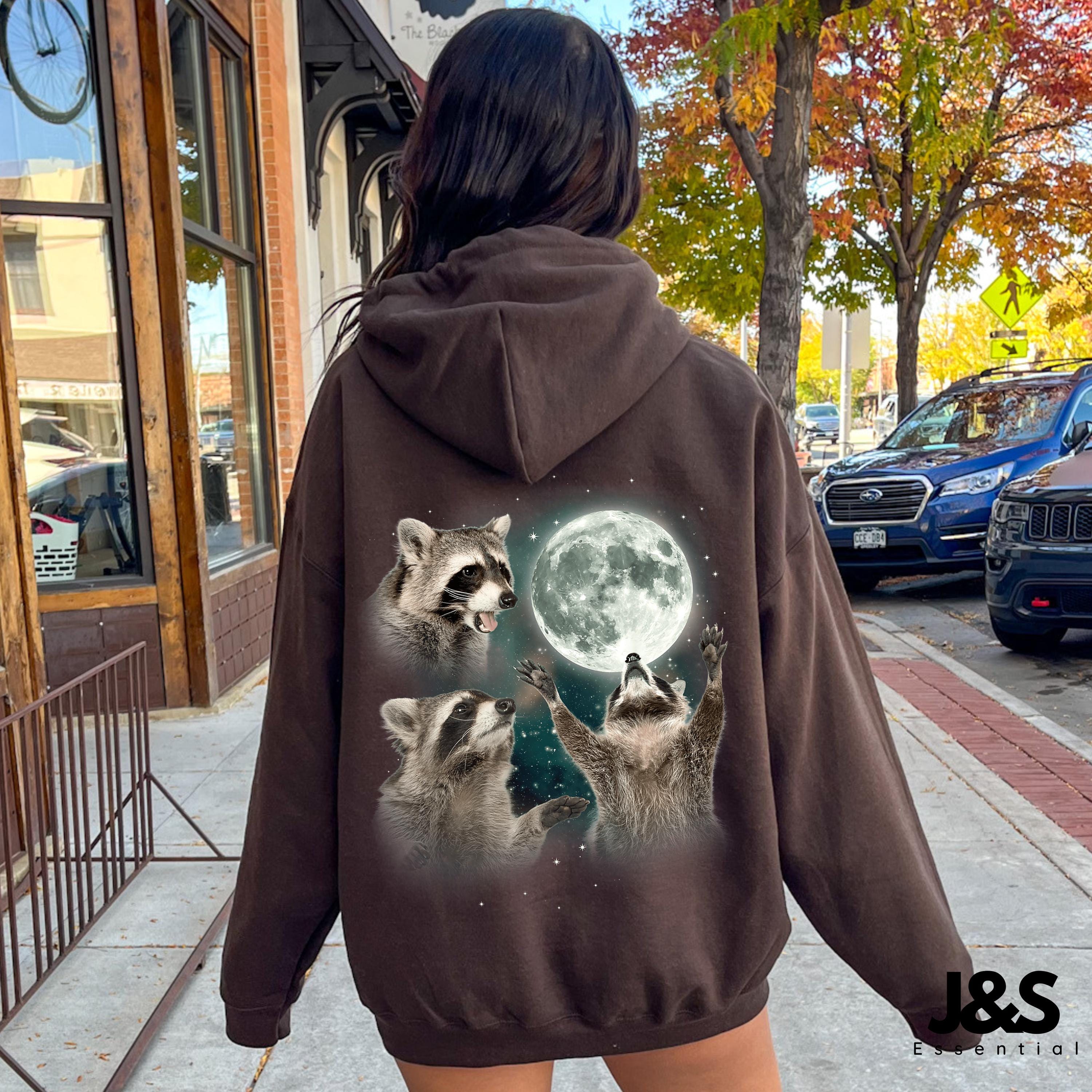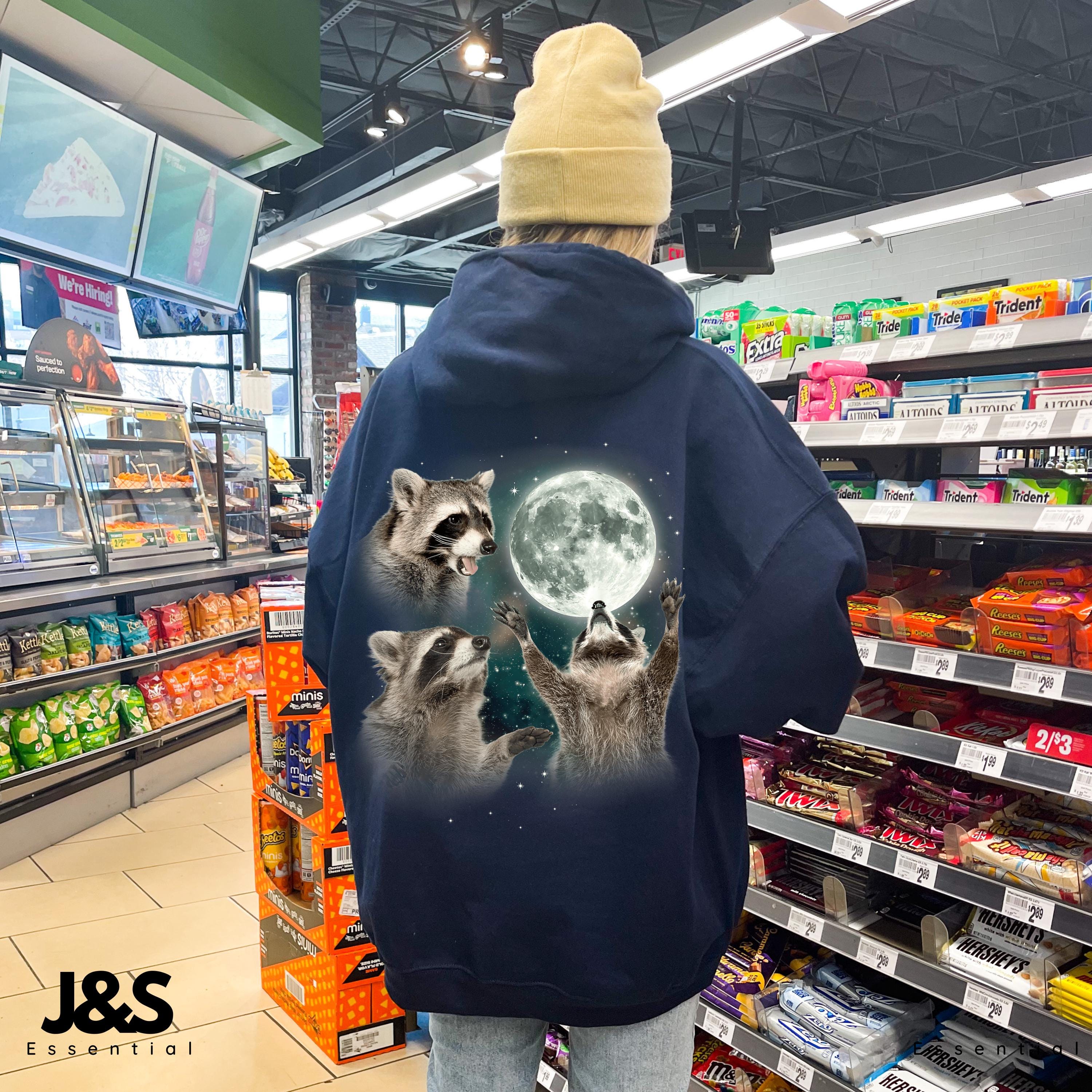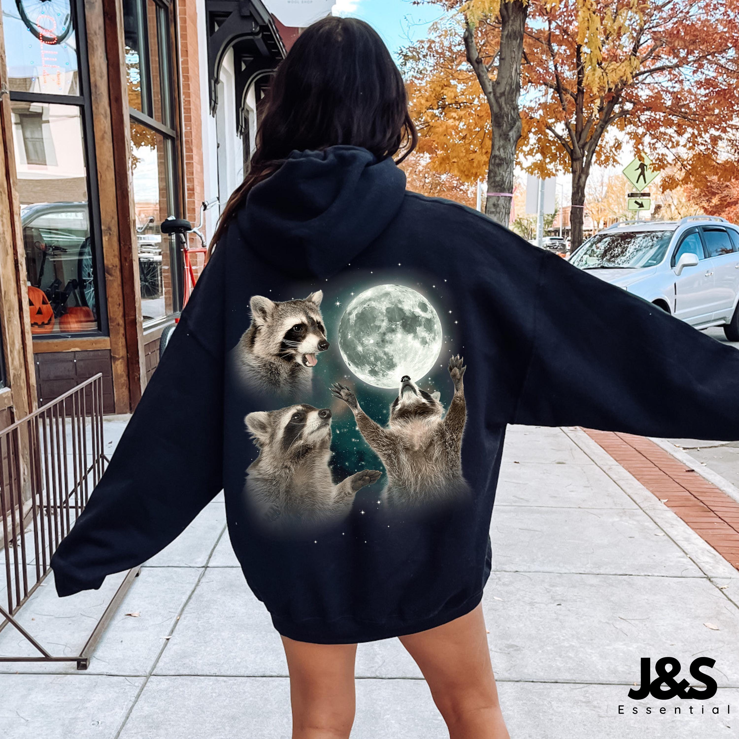 Three Raccoon Moon Hoodie, Funny Animal Lover Gift, Cozy Unisex Pullover, Cool Raccoon Sweatshirt, Celestial Moon Phase Hoodie